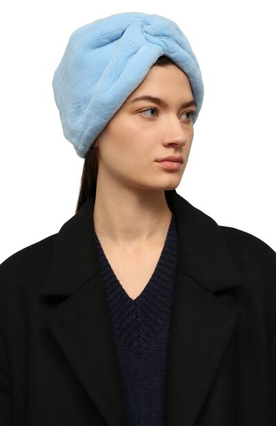 Шапка из стриженого меха норки ставит знак равенства между комфортом и красотой. Технология Furland Climate technology поддерживает оптимальную для кожи головы температуру, запатентованная подкладка отвечает за сохранность прически, а насыщенный голубой оттенок и позаимствованная у чалмы форма помогают остаться в центре внимания.