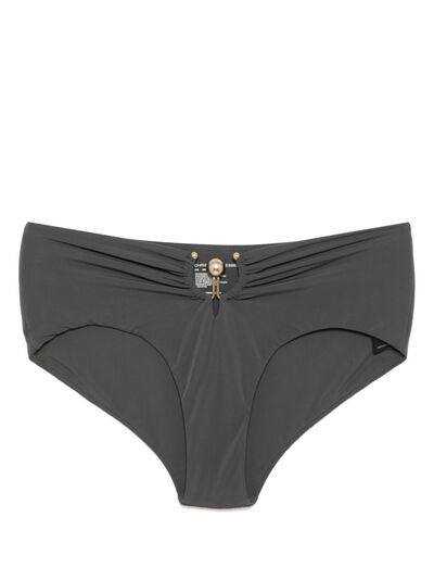 charcoal grey stretch-design ruched detailing signature orbit hardware high-waisted full lining Be mindful to try on swimwear over your own garments.