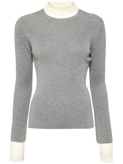 grey/cream white high neck fine knit knitted construction crew neck long sleeves layered design straight hem