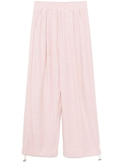 dust pink jersey texture elasticated waistband two side slash pockets two rear patch pockets straight leg pull-on style
