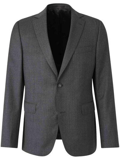grey virgin wool mélange effect front button fastening notched lapels long sleeves chest welt pocket two side flap pockets buttoned cuffs English rear vents
