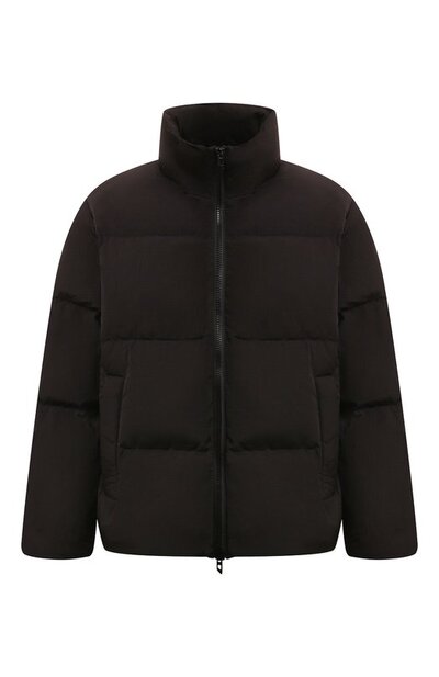 Стеганую куртку на утином пуху сшили из переработанного нейлона. Модель с двумя внешними и одним внутренним карманами дополнили капюшоном, интегрированным в воротник-стойку.