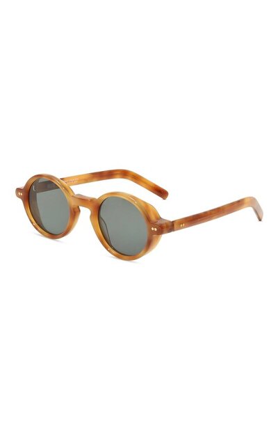 Оправу круглых очков с узкими шорами, подходящих женщинам и мужчинам, выполнили вручную из черепахового ацетата. Модель с парными заклепками спереди и на армированных дужках оснастили антибликовыми линзами, блокирующими 100% ультрафиолетовых лучей.