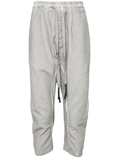 light grey organic cotton stripe detailing stonewashed cropped leg drawstring waist two side slit pockets rear patch pocket