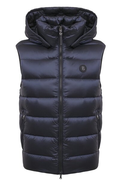 Стеганый жилет Holger на утином пуху дополнили съемным регулируемым капюшоном, двумя внутренними и парой внешних карманов. Модель из водоотталкивающего текстиля на основе переработанного нейлона застегивается встречной молнией с пуллером в виде литеры В.