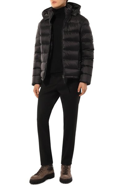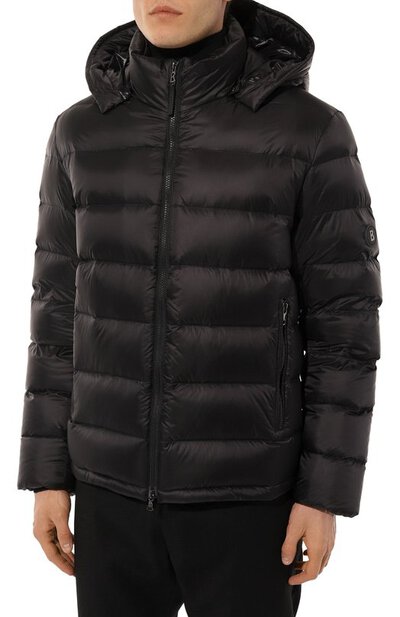 Стеганую куртку Hugh со съемным капюшоном и боковыми карманами на молнии выполнили из частично переработанного полиамида с водоотталкивающей пропиткой. Утепленная утиным пухом модель с двумя внутренними карманами и кулиской по краю застегивается встречной молнией.