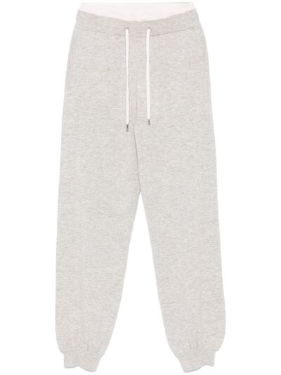 heather grey merino wool-cashmere blend knitted construction mélange effect elasticated drawstring waistband layered details two side inset pockets ribbed ankles tapered leg