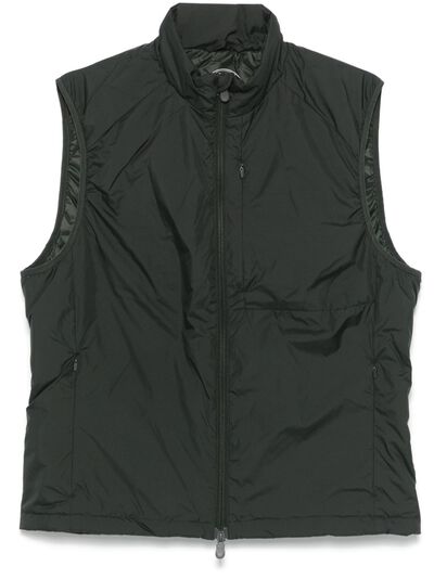 black recycled polyester front two-way zip fastening stand-up collar sleeveless two side zip-fastening pockets straight hem