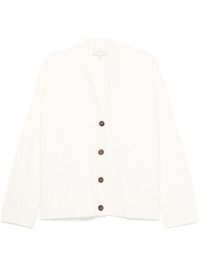 white merino wool ribbed knit front button fastening V-neck drop shoulder long sleeves straight hem