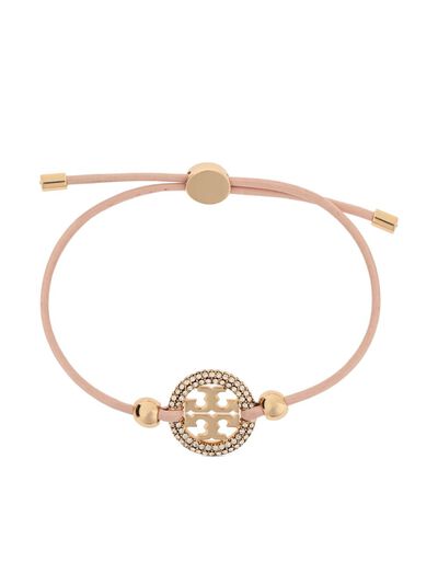 blush pink calf leather 18kt gold plated signature Double T motif crystal embellishment adjustable sliding fastening Normal everyday use and external agents may reduce the lustre of gemstones and gold surfaces. To maintain, use specific, non-abrasive products specially meant for cleaning jewellery.
