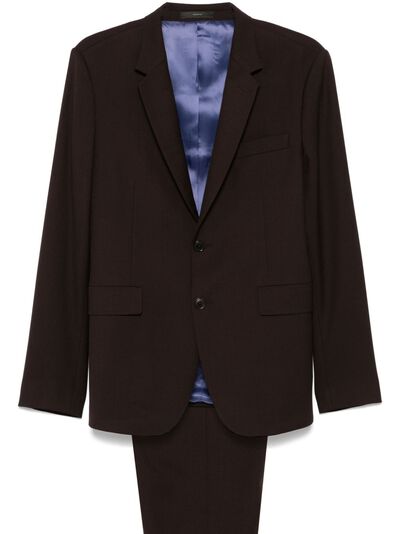 cedar brown wool twill weave set of two Blazer: front button fastening notched lapels long sleeves buttoned-cuff sleeves chest welt pocket two side flap pockets English rear vents internal slip pockets straight hem Trousers: concealed front button, hook and zip fastening belt loops two diagonal pockets to the sides coin pocket pressed crease two rear welt pockets tapered leg