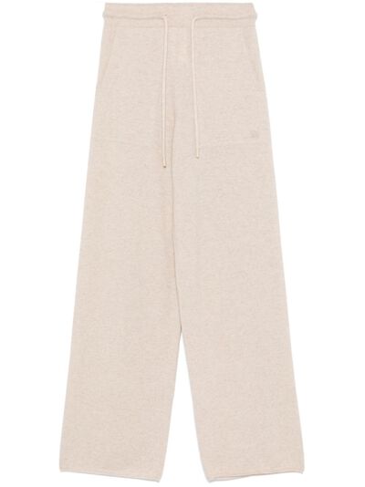 beige wool-cashmere blend knitted construction mélange effect elasticated waistband with internal drawstring two side slash pockets straight leg
