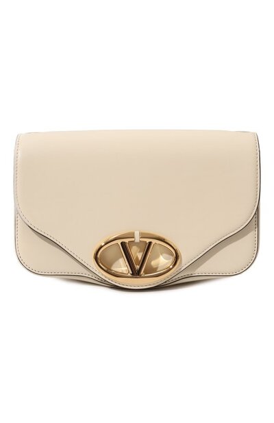 Кожаную сумку со съемным регулируемым плечевым ремнем украсили латунной эмблемой VLogo на фигурном клапане. Аксессуар дополнили двумя внутренним карманами, один из которых застегивается молнией.