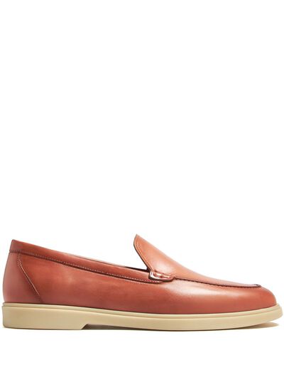 brown leather brushed finish almond toe slip-on style branded insole rubber sole