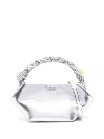 silver-tone recycled leather blend grained texture magnetic fastening single braided top handle adjustable detachable shoulder strap gold-tone logo plaque silver-tone logo plaque debossed logo to the rear main compartment internal card slot debossed internal logo full lining