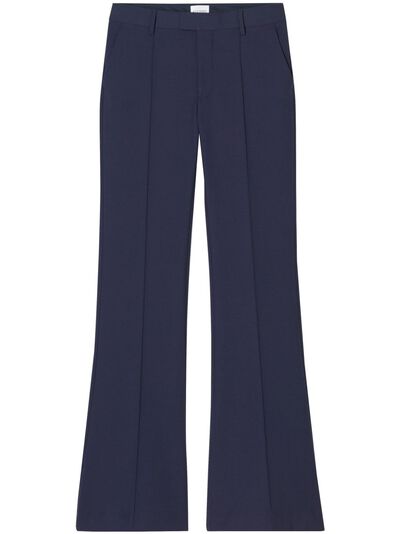 midnight blue stretch-design concealed front fastening belt loops raised seam detail two side slash pockets flared