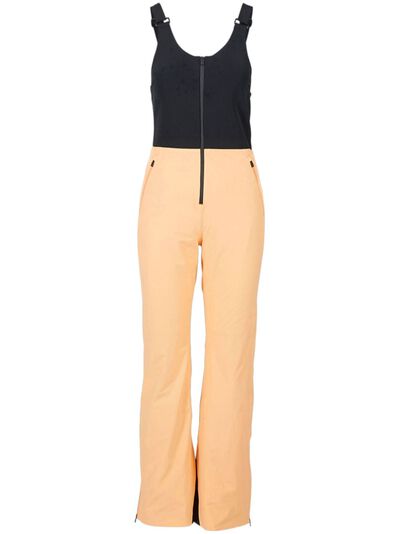 beige two-tone design short front zip fastening logo print at the leg sleeveless open back straight leg