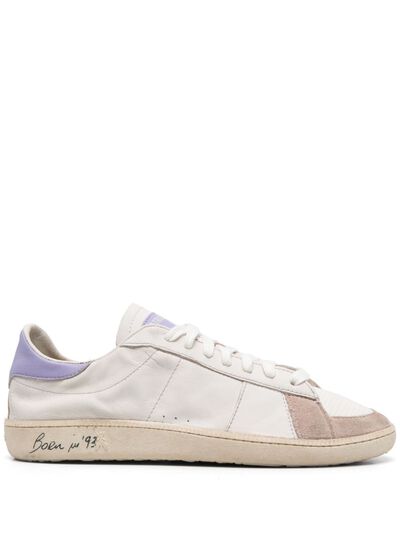 white calf leather panelled design front lace-up fastening contrasting branded heel counter suede panels side perforated detailing logo patch at the tongue perforated toebox round toe branded leather insole logo at the sole flat rubber sole This piece comes complete with a protective dust bag.