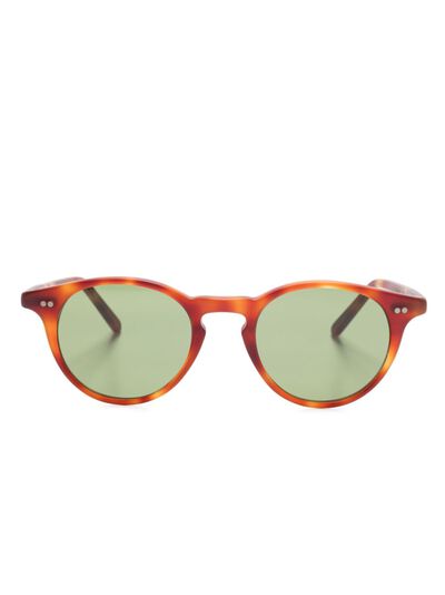 Havana brown tortoiseshell effect matte finish pantos frame green tinted lenses UV-protective lenses straight arms curved tips