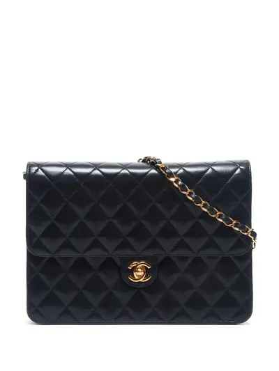 circa 2001-2002 black lambskin diamond quilting signature interlocking CC turn-lock fastening foldover top leather and chain-link shoulder strap main compartment contrast lining internal zip-fastening pocket signature stitched interlocking CC logo internal logo stamp gold-tone hardware Serial Number: 7055915 This item comes with an original authenticity seal. Condition: GOOD. This previously owned and used item is in good condition with minimal signs of use. This may include fading of material or plating and scratches.