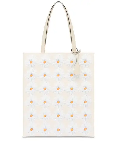 off-white cotton/calf leather magnetic fastening two top handles leather tag floral motif internal zip-fastening pocket