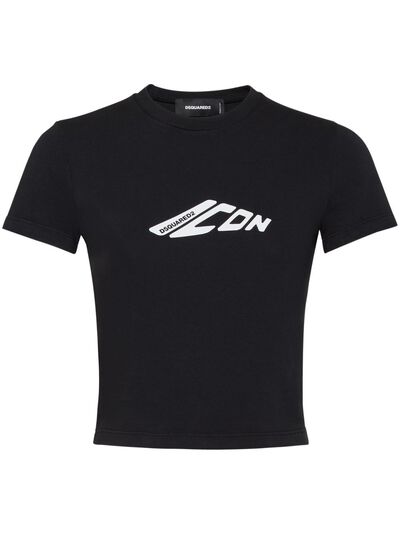 black cotton jersey texture crew neck short sleeves logo print to the front straight hem