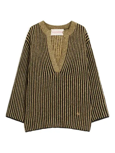 black/gold metallic threading vertical stripe pattern V-neck long sleeves VLogo Signature