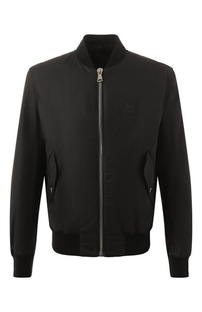 Бомбер из непродуваемого полиэстера дополнили воротом, поясом и манжетами из трикотажа в рубчик. Куртку с внутренним и внешними боковыми карманами украсили кожаным патчем с тисненой монограммой PB спереди и рельефным логотипом сзади.