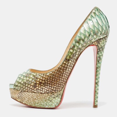 Christian Louboutin Two Tone Python Lady Peep Pumps Size 37 1073750 (зелёный, lpn28069670)