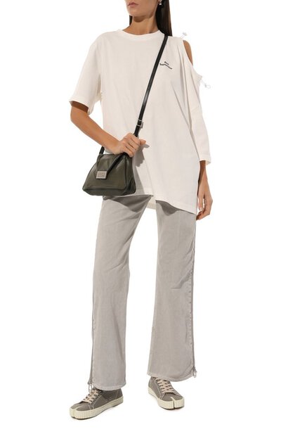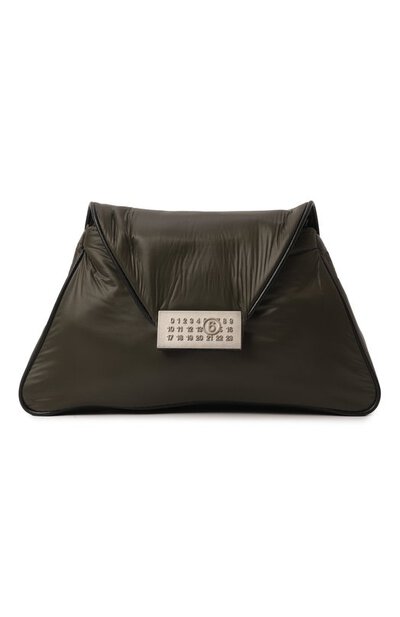 Сумку Numeric с регулируемым ремнем выполнили из полимера. Застежку на фигурном клапане скрыли под пластиной с числовым кодом, а на задней панели проложили фирменную строчку.