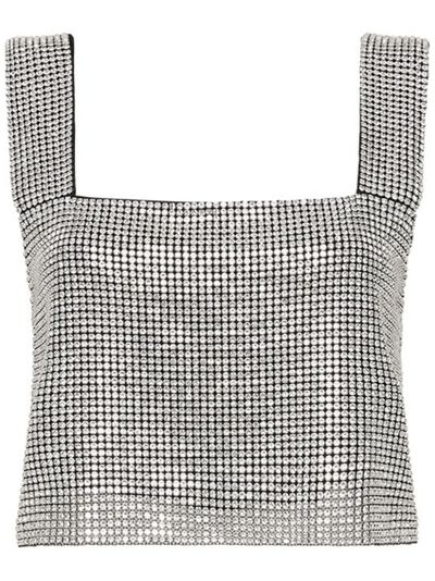 silver-tone rhinestone embellishment rear zip fastening square neck sleeveless straight hem