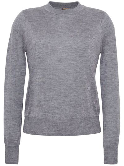 heather grey ribbed cuffs and hem crew neck long sleeves