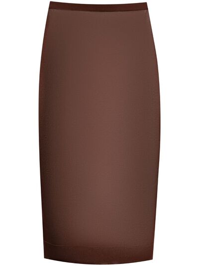 chocolate brown concealed side zip fastening semi-sheer construction high waist mid-length