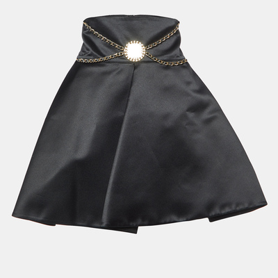 Elisabetta Franchi Black Satin Chain Detail Pleated Mini Skirt M 1075116 (чёрный, lpn28092286)