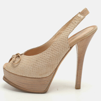 Fendi Light Beige Python Embossed Leather Fendista Platform Pumps Size 37.5 1074119 (бежевый, lpn28092380)