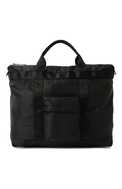 Сумка из влагостойкого нейлонового рипстопа с отделкой из плотной ткани дополнена двумя ручками, съемным плечевым ремнем. Аксессуар с одним внешним и двумя внутренними карманами застегивается молнией. Сбоку – небольшой брендированный ярлык в тон.