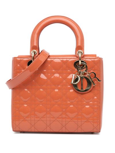 quilted patent leather body flat leather top handles detachable flat leather strap top zip closure interior zip and slip pockets Orange. Serial Number: 01-BO-1109. Condition: GOOD. This previously owned and used item is in good condition with minimal signs of use. This may include fading of material or plating and scratches.