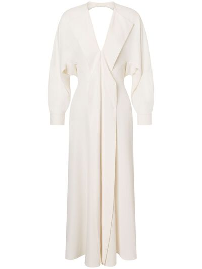 white panelled design rear button fastening plunging V-neck batwing sleeves A-line skirt open back