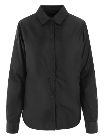black padded design lightweight construction front press-stud fastening classic collar long sleeves press-stud fastening cuffs two side inset pockets mini logo tag to the side curved hem