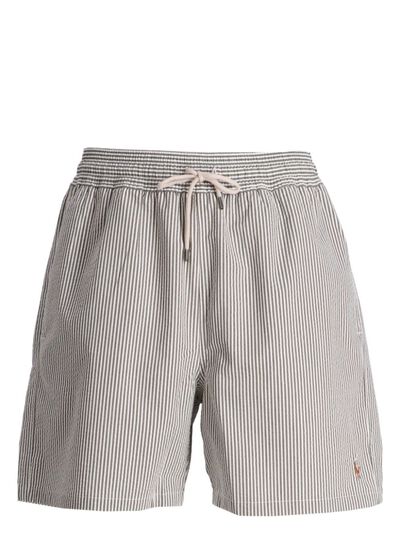 dark green elasticated drawstring waistband two side slit pockets rear flap pocket Be mindful to try on swimwear over your own garments.