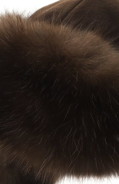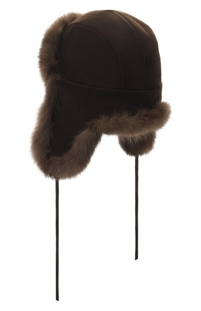 Классическая коричневая шапка-ушанка поможет с комфортом пережить сильные морозы. Модель сшили из ультрамягкого кашемира, который сохраняет тепло в восемь раз эффективнее шерсти, а весит гораздо меньше. Для отделки использовали роскошный мех дикого русского соболя с густой подпушью и шелковистым остевым волосом. За счет уникального природного градиента кажется, что материал сияет даже в пасмурную погоду.