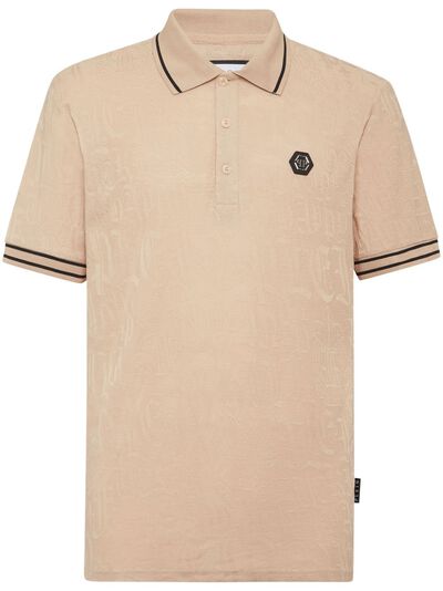beige front button placket logo patch at the chest polo collar ribbed cuffs