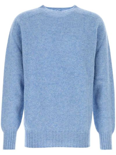 light blue wool mélange effect ribbed trim crew neck long sleeves