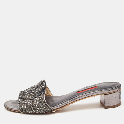 Step out stylishly in these CH Carolina Herrera slides that are ideal for casual dinner nights. The grey flats are crafted from leather and adorned with crystal embellishments. They are finished with leather lined insoles and soles to provide comfort.