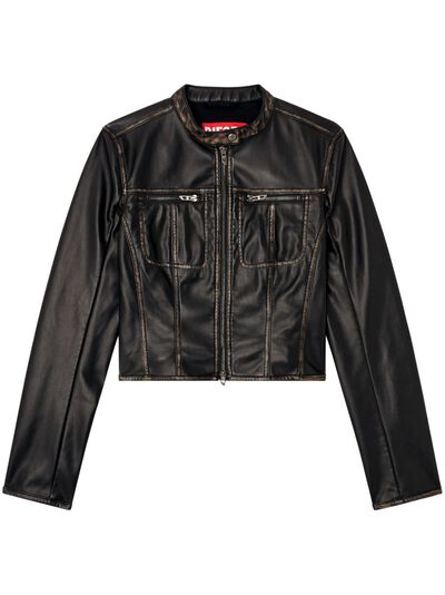 black front zip fastening press-stud fastening collar two zip-fastening chest pockets long sleeves