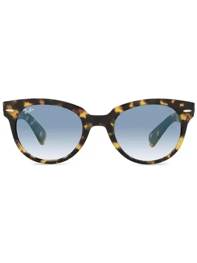Havana yellow acetate cat-eye frame gradient lenses tortoiseshell effect rivet detailing appliqué logo straight arms curved tips These glasses come with a protective case.