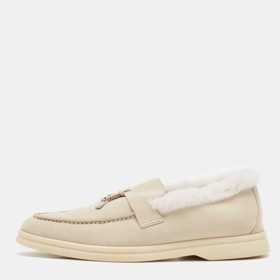 Loro Piana Grey Shearling Fur and Suede Summer Charms Walk Loafers Size 36 1079861 (lpn28631995)