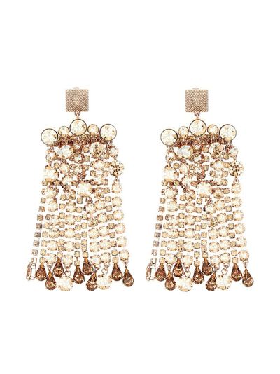 gold-tone glass crystal embellishment clip-on design chandelier design These earrings come as a pair.