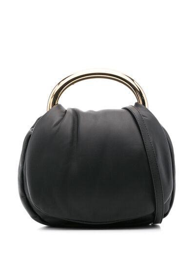 black foldover top with magnetic fastening single metallic top handle detachable shoulder strap This piece comes complete with a protective dust bag.