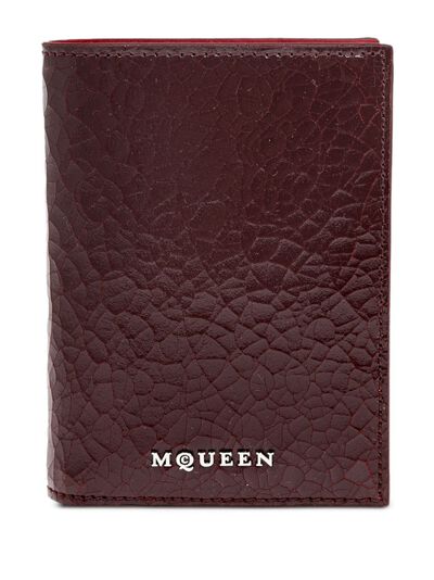 dark red bi-fold design internal note compartments internal card slots logo lettering